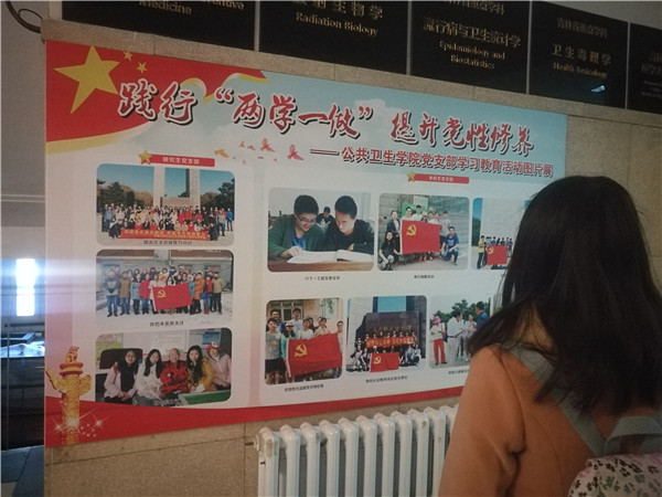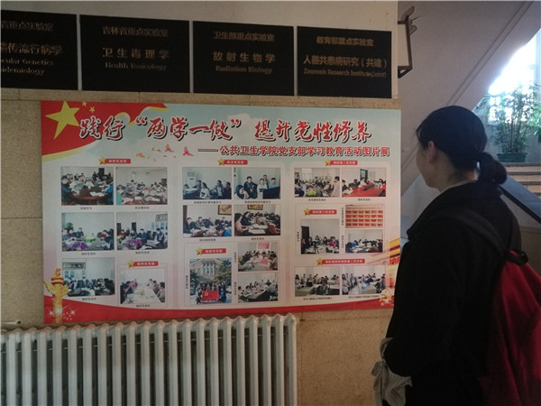 一楼大厅举办“践行‘两学一做’ 提升党性修养”主题图片展活动,供全院师生参观浏览。