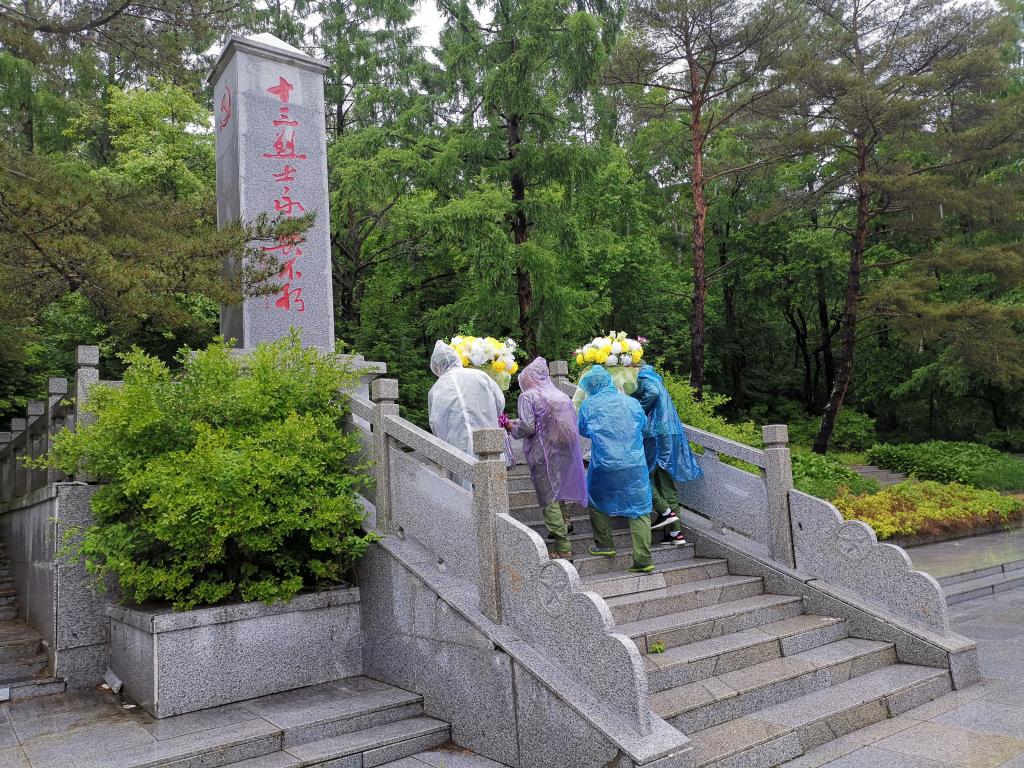 6月15日,全体学员前往珲春市大荒沟党史党性教育基地实地学习,参观了珲春党史展览馆,瞻仰了大荒沟十三烈士墓,学习了珲春市首任县委书记刘建章同志不畏艰苦、甘于奉献的英雄事迹,冒雨徒步“重走抗联路”,抒发对东北抗联战士的缅怀之情。