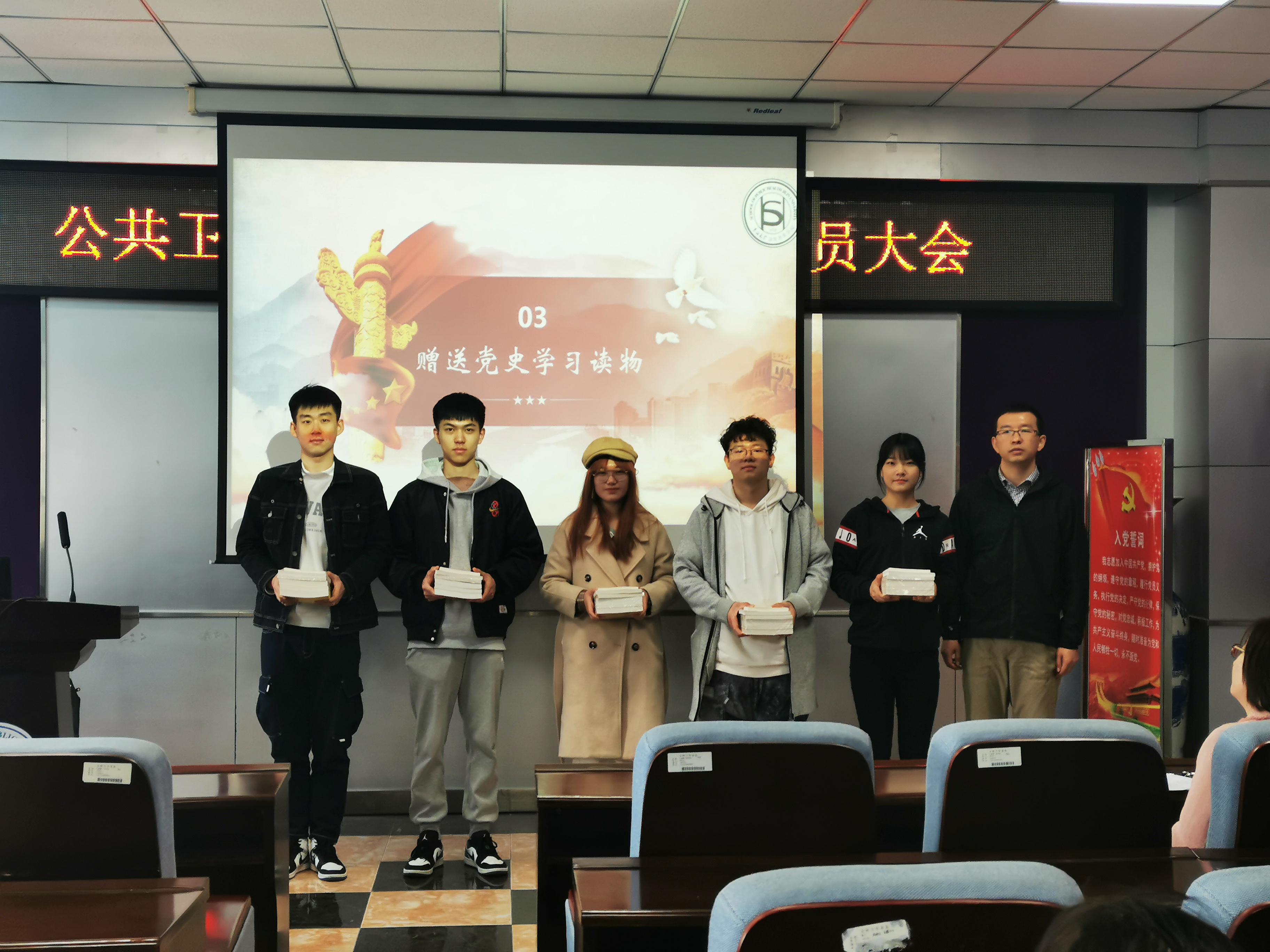 微信公众平台,开辟“百年党史青年说”“百年党史周周测”等专栏,选聘学生“党史宣讲员”,同时线下组织开展理论学习,通过微党课大赛、红歌会、志愿服务、走访红色基地等活动创新教育形式。接下来,苏国范老师向本科生党支部代表赠送党史学习读物。冷贺璇老师和刘心怡老师向“党史宣讲员”代表颁发聘书。最后,本科生党员代表黄羽薇同学进行了发言。