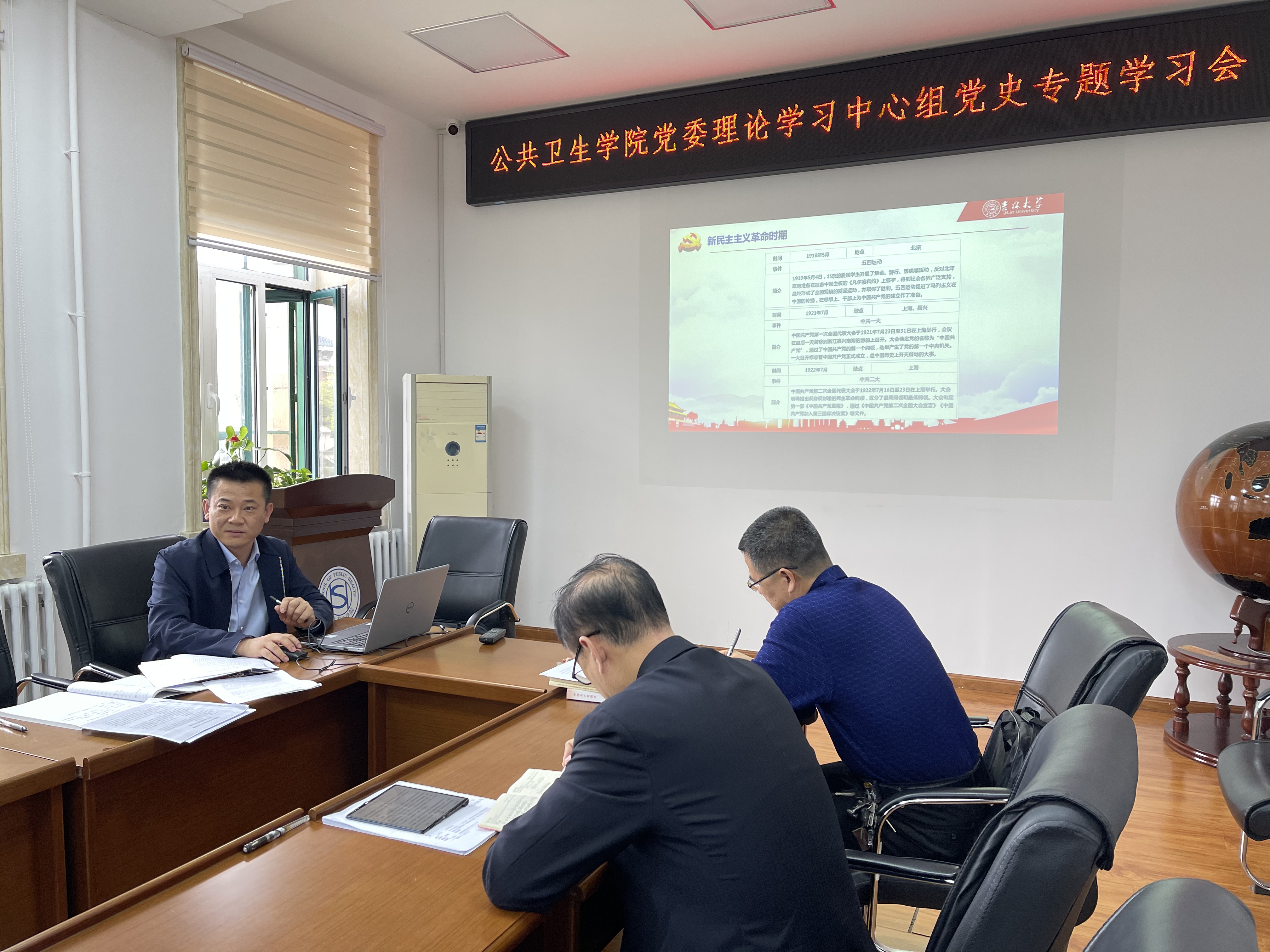 4月29日上午,公共卫生澳门六合彩 理论学习中心组召开“学史明理 感悟思想伟力”党史专题学习会议,全体班子成员、党委委员参加会议。会议由澳门六合彩 党委书记赵国利主持。