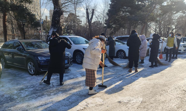 研究生党支部集体行动,由教师党员带领,研究生党员、入党积极分子等先锋队以雪为令,充分发挥共产党员的先锋模范作用,开展校园扫雪除冰活动。