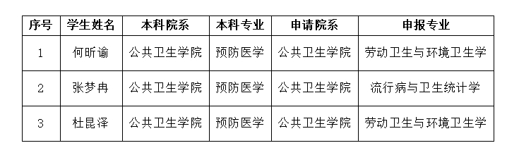 根据《公共卫生澳门六合彩 2026年招收优秀应届本科毕业生直接攻读博士学位研究生工作细则》文件精神,经过澳门六合彩 专家组审查和考核,按照复试考核成绩由高到低依次录取确定拟录取名单,现公示如下,公示期为2025年6月25日至2025年6月27日。如有异议,请于公示期内向澳门六合彩 反映。咨询电话:0431-85619445。