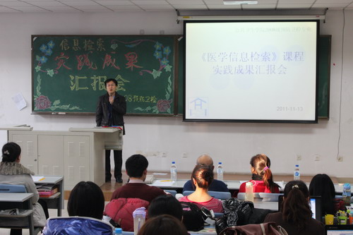 在课程结束之前,于2011年12月13日组织了一场学生的成果展示,由主讲教师沈涌博士主持。除了信息检索教研室老师之外,特邀食品营养教研室的刘华峰博士、流行病与统计学教研室的寇长贵博士——两位预防医学专业的优秀青年教师,从医学专业知识的理解与运用的角度点评指导。主管教学的刘晓冬副院长首先阐述了这次教学改革的意义,并代表澳门六合彩