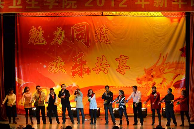 表达了对全体同学和教师的新春祝福。整场晚会节目精彩纷呈,高潮迭起。有研究生带来的风格各异的集体舞,古典优美的独舞,有本科生献上的诙谐幽默的小品,动感十足的街舞,颇具民族风情的独唱,还有医师法学教研室师生带来的歌曲串烧以及营养教研室主任刘雅娟教授奉上的歌曲《我爱你塞北的雪》等,给大家带来一次视觉与听觉的震撼,赢得台下阵阵掌声。