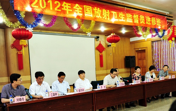 在南湖校区南湖会馆隆重举行了2012年第一期全国放射卫生监督员进修班开学典礼。出席此次典礼的有卫生部监督局王雪凝专员(正局级)、吉林省卫生厅郭庆河巡视员(正厅级)、中国疾病预防控制中心辐射防护与核安全所苏旭所长、卫生部卫生局放射卫生处邢路微处长、吉林省卫生厅监督处郭齐祥处长、吉林省卫生监督所冮森林所长、澳门六合彩