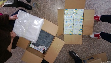 得知目前雅安受灾地区物资需求主要有雨具、食品、药品、卫生用品及过夜的衣服被褥等,志愿者工作部组织了爱心募捐,得到了全院同学们的热烈响应,同学纷纷慷慨解囊,有的捐钱有的捐物,有些衣服被褥甚至都是全新的。“只要灾区需要,自己再喜欢也要捐出去。”信息二班有位同学如是说。所得捐款全部用于购买物资以捐至灾区前线。在采买过程中,同学们还宣传了自己对于灾情的所见所感,打动了商家,纷纷以最低的价格出售。最后,所有物资被打包寄至前线,随之被邮去的还有公卫全体师生对灾区同胞的鼓励和祝福。