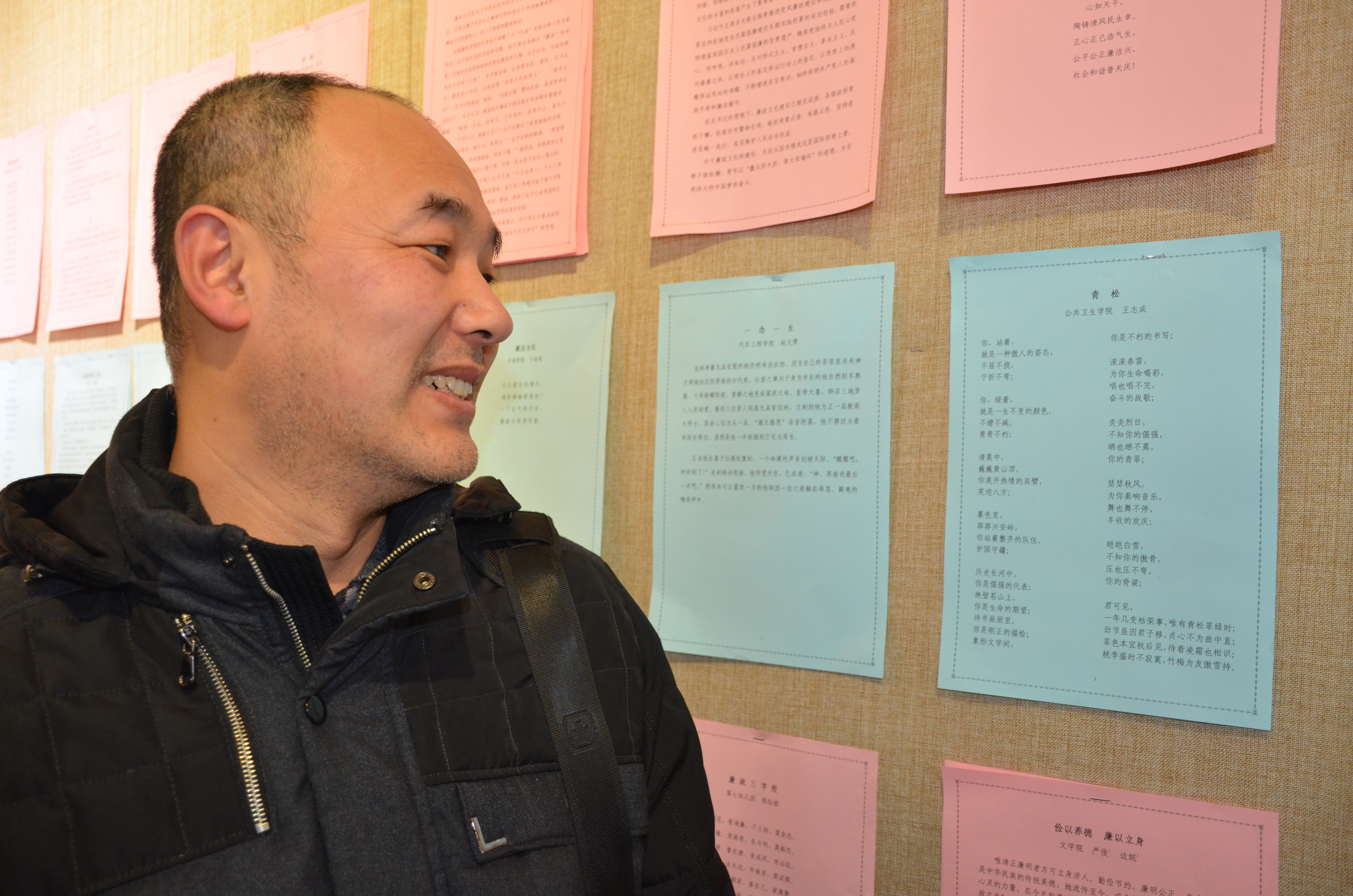 教师王志成老师的现代诗“青松”也在展览之中。教工们在被高水平艺术作品吸引的同时也交流着对于廉政作品、廉政建设的看法和体会。此次展出作品内容生动、主题鲜明、寓意深刻、融思想性和艺术性于一体,充分体现了廉政文化和艺术形式的高度结合,表现了反腐倡廉的新气象、新风尚,讽刺鞭挞了社会腐败现象,同时也反映了澳门六合彩