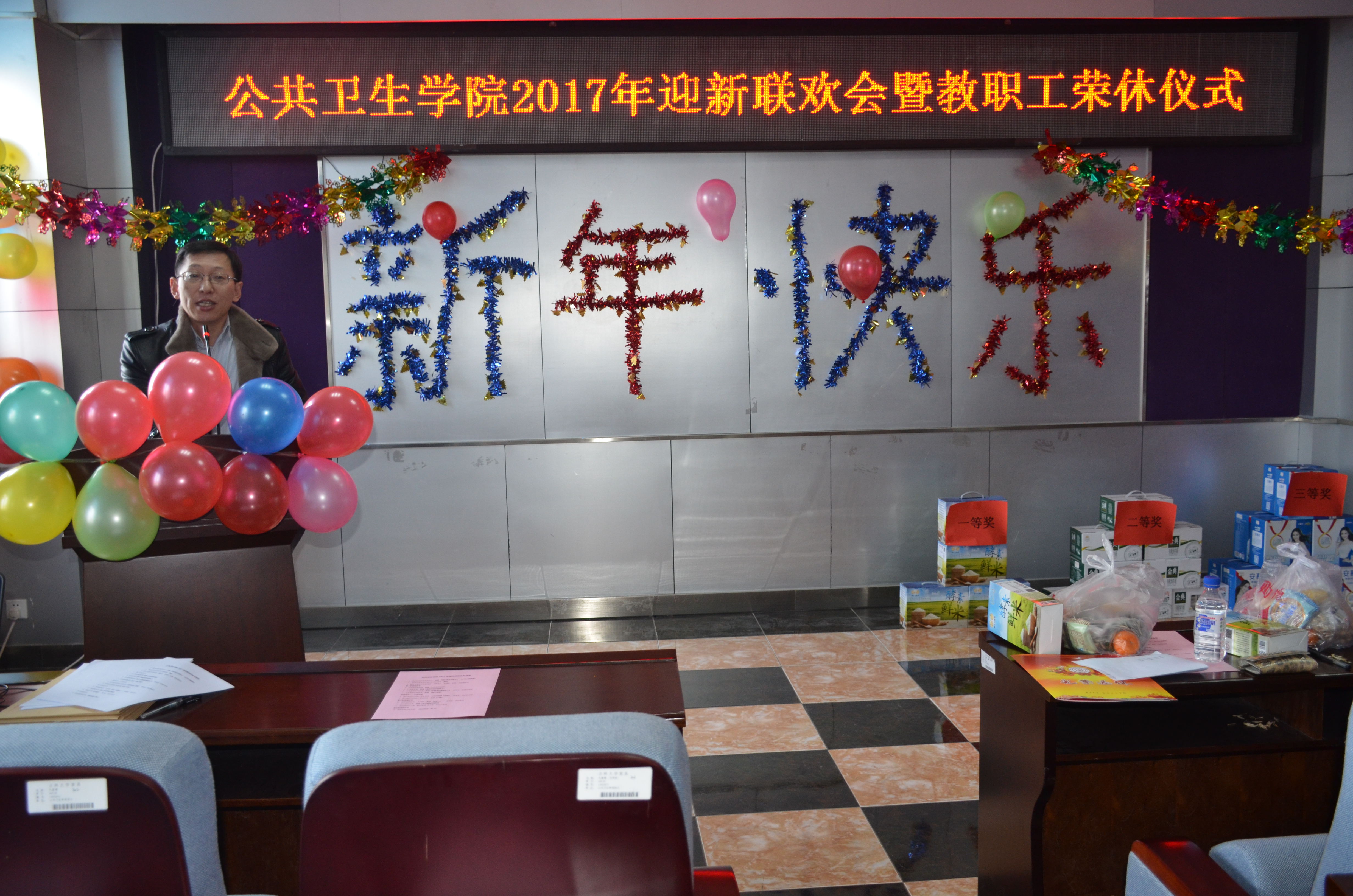 三楼报告厅举行了“2017年迎新联欢会暨教职工荣休仪式大会”,会议由钟绍峰书记主持,全院教职工参加。
