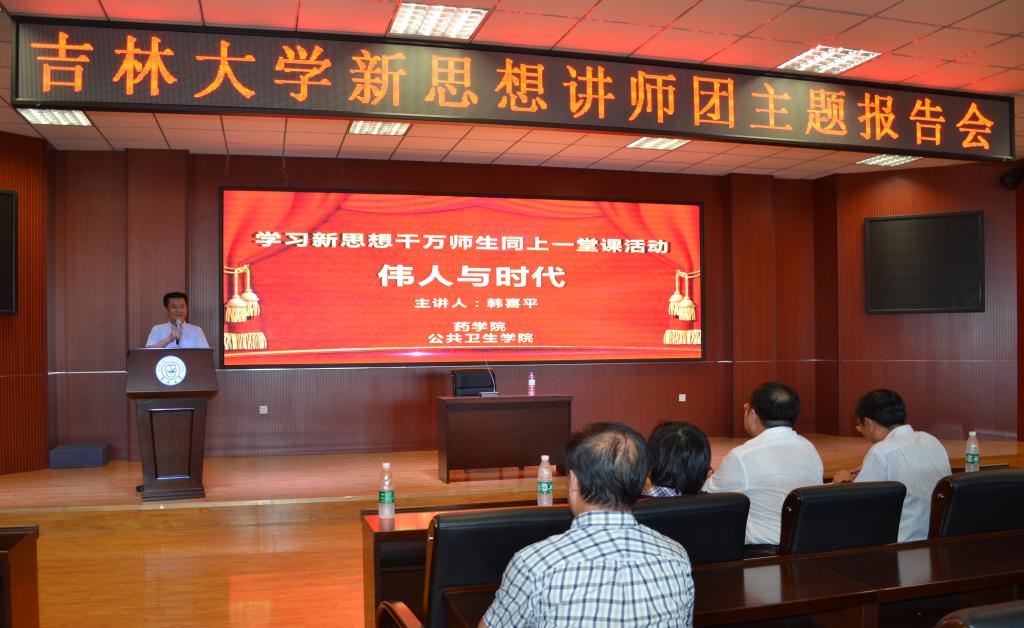 新思想讲师团”韩喜平教授在新民校区一教401室为两院全体教职工做了主题为《伟人与时代》的报告。会议由澳门六合彩