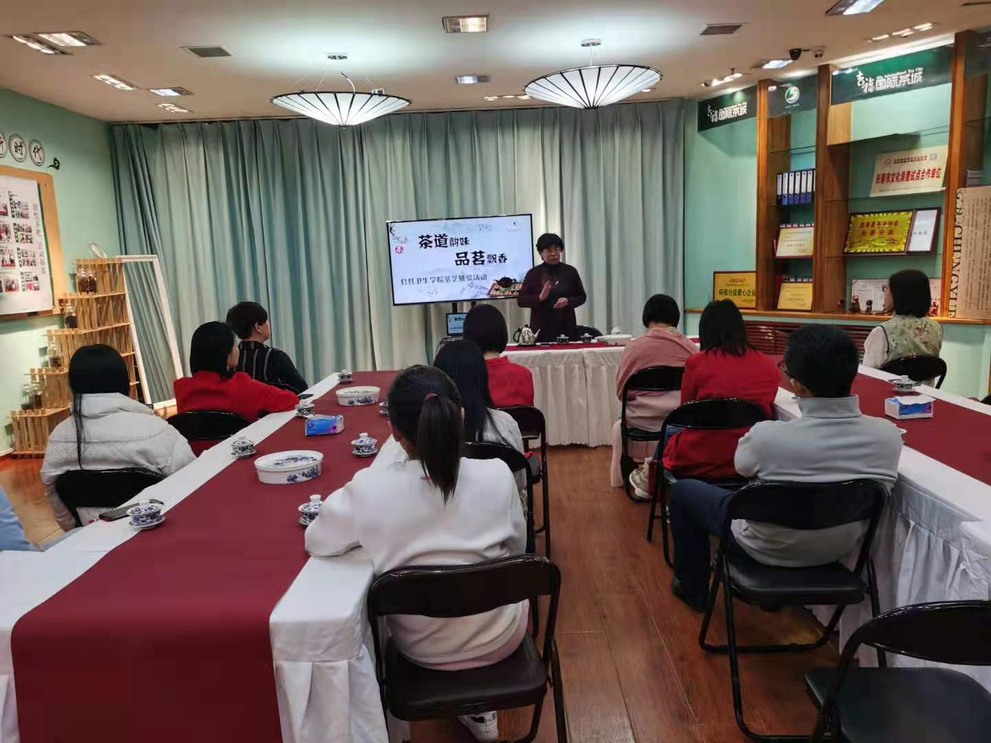 赵金荣老师为我们所做的精彩讲座,使我们对茶文化的渊源,茶的益处,茶的礼节以及品茶文化有了一定的了解,加深对中国传统茶文化的认识。悠悠的琴声,淡淡的茶香,在喜庆祥和气氛中,大家表达了对美好未来的坚定信心,共荣澳门六合彩