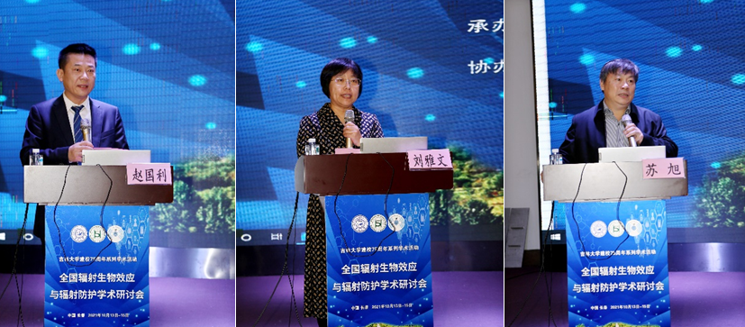 院长刘雅文教授和中国卫生监督协会放射卫生专业委员会现任主委兼中国疾控中心首席科学家苏旭研究员分别致辞。此外,参加会议的领导还有吉林省卫健委科教处和吉林大学职能部门相关领导,本次会议得到了来自全国各地的31家高校和科研院所的大力支持,共130余名专家、学者出席了本次会议。