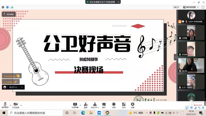 比赛开始前,大家集体观看了公卫抗疫主题宣传片,同学们不觉深受鼓舞和触动。各位老师与同学们在线交流互动。老师们表示,同学们要在疫情期间做好个人防护以及心理疏导,同时预祝比赛圆满成功。
