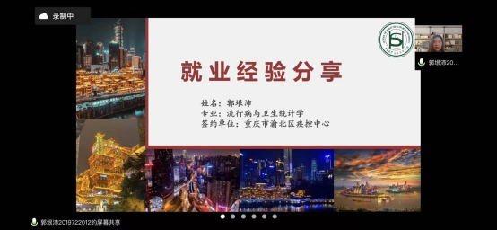 郭垠沛目前已签约至重庆市渝北区疾病预防控制中心,她为同学们分享了自身明确就业意向的心路历程,并结合笔面试经历,总结了基层选调生和疾控中心两个方向的应聘备考经验。她以实战经历为基础,介绍了部分南方城市的事业单位招聘流程和应聘考试情况,并通过模拟例题的形式向同学们讲解了结构化面试准备经验和应试技巧。