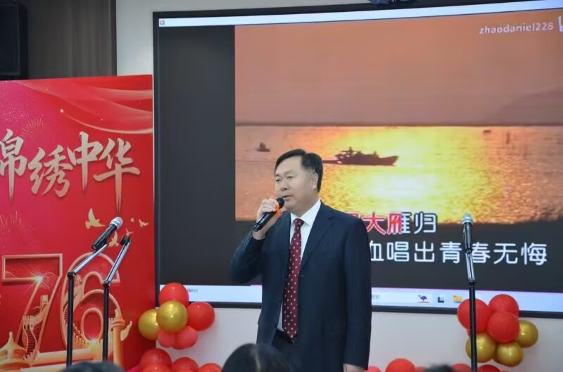 党委书记刘金超在致辞中表示,在庆祝新中国成立76周年暨中国人民抗日战争暨世界反法西斯战争胜利80周年之际,举办这样的活动既丰富了教职工文化生活,也是一次深刻的爱国主义教育。通过歌声,老师们表达了对历史的铭记、对和平的珍视和对未来的信心。