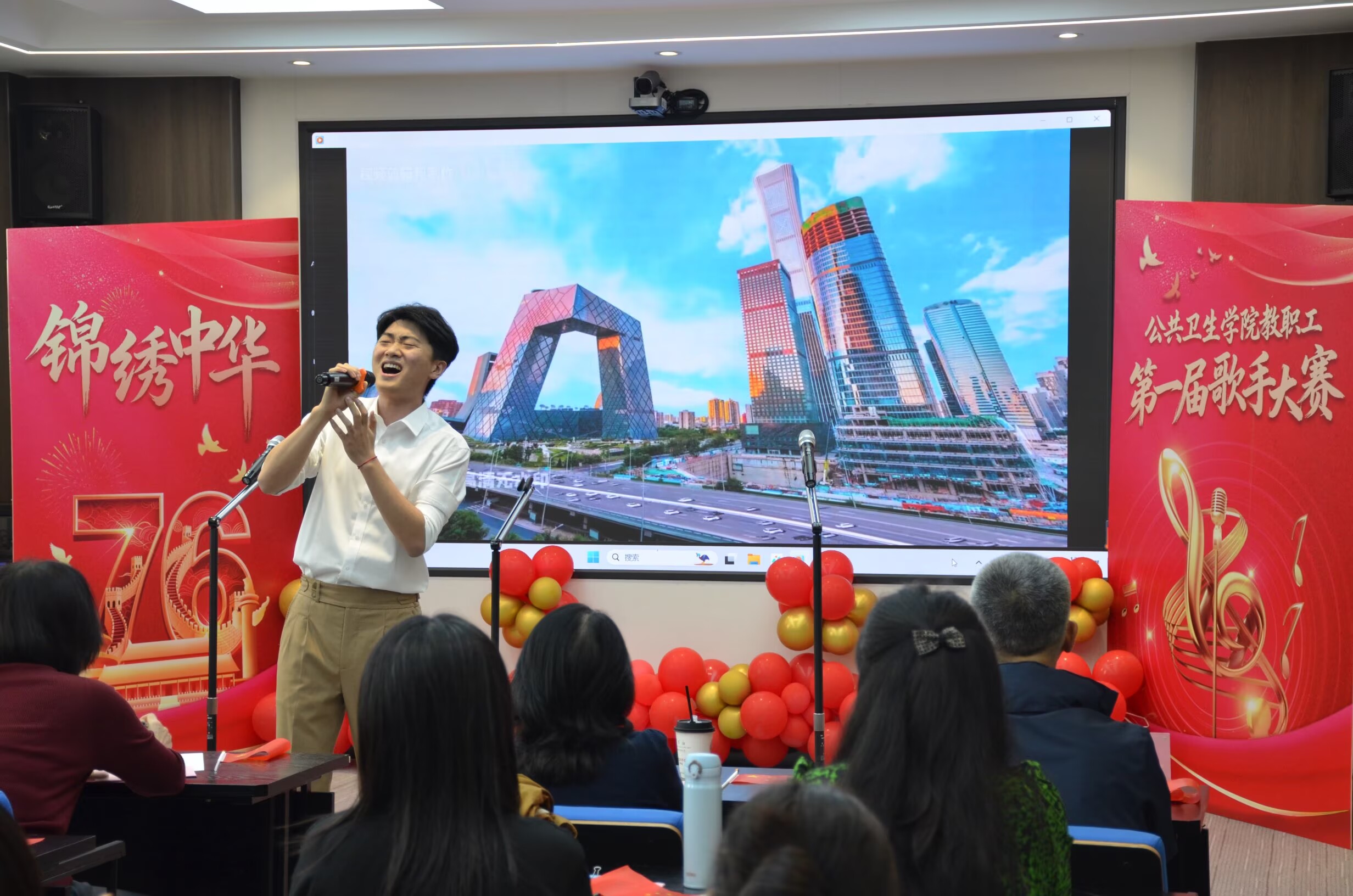 在9月28日举行“喜迎华诞,声动公卫”首届教职工歌手大赛。全院教职工齐聚一堂,用歌声表达对祖国的深情祝福,共同庆祝这一具有特殊意义的历史时刻。
