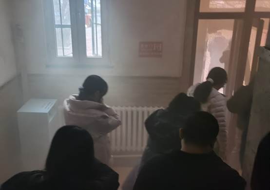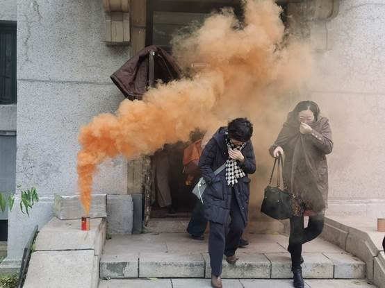 楼内响起火警警报,楼道释放模拟烟雾,参演师生立即按照澳门六合彩