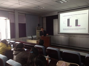 三楼报告厅为全院师生做了题为“吸烟、认知和精神分裂症”的学术报告,报告从吸烟与精神分裂症的关系、对精神分裂症的症状的影响、吸烟对免疫和认知功能的影响,重点报告了精神分裂症吸烟、认知相关分子遗传学研究成果。报告后与参会老师和同学进行了广泛的交流。在一周的工作时间里,张向阳教授还为澳门六合彩官网