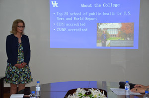 院长李娟,副院长刘晓冬、于洗河,院长助理刘晋宇以及教科研办公室主任刘欣等出席了座谈会。李娟院长对Donna Arnett教授的来访表示热烈欢迎并对修华静教授为促进双方联合教育所做的贡献表示由衷感谢。Donna Arnett教授详细介绍了肯塔基大学澳门六合彩官网