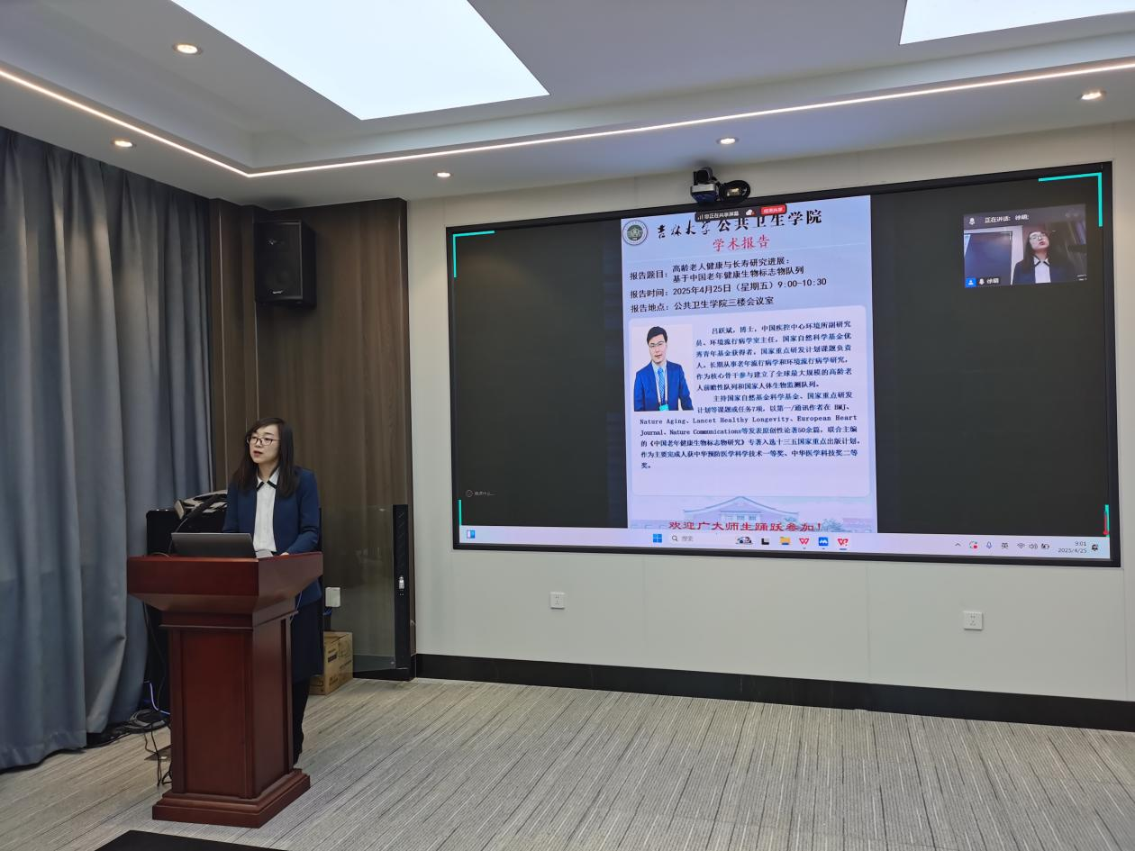 4月25日,中国疾病预防控制中心环境所环境流行病学室主任吕跃斌副研究员应邀来院交流,作题为"高龄老人健康与长寿研究进展:基于中国老年健康生物标志物队列"的学术报告。报告由公共卫生澳门六合彩