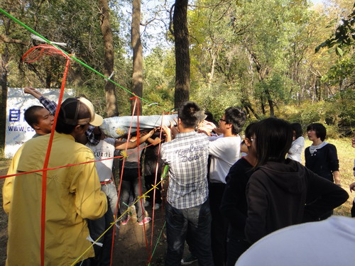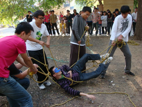 领导和学生干部一起,进行了“穿越电网”、“冰山取水”、“万里长城”等一系列刺激有趣的游戏。大家团结一致,勇往直前,无论怎样的“关隘”都阻挡不了老师和同学们的热情,欢声笑语充满了整个营地。