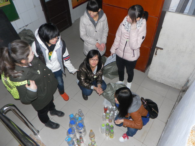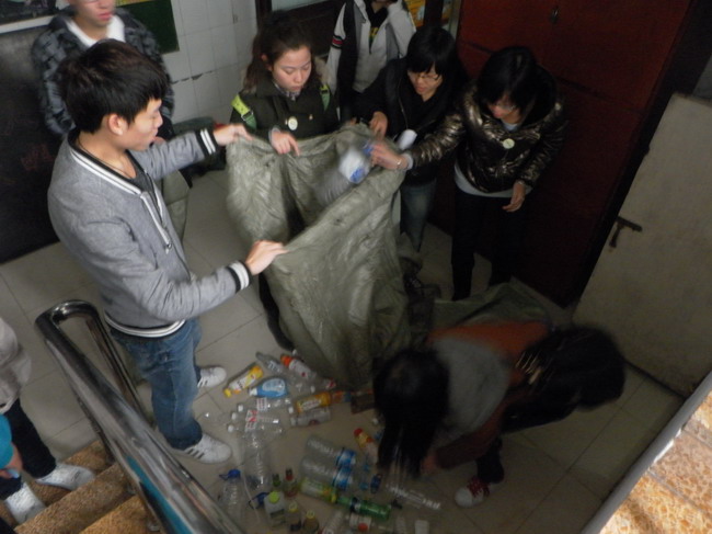 各个寝室进行废品收集、登记,并将废品送到废品回收站变卖,用换得的钱购买了仙人掌、芦荟及君子兰等易于成活、有益于改善室内环境的植物盆栽,分发到各个贡献废品的寝室。此外,志愿者们将收集到的学习资料分门别类地整理出来,送给有需要的同学。这不仅使资源得到循环利用,也使宝贵的学习经验得到了传递。