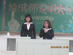 学生会外联助贷部组织的吉林大学第八届“挑战杯”大学生课外学术科技作品竞赛说明大会,在新民二教2103室召开。此次说明大会旨在进一步宣传活动,加深各位预参赛者对“挑战杯”的了解。学生会主席、助贷部全体成员、预参赛者和10—12级的各班班长参加了此次大会。