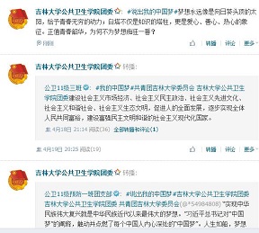 团委组织部从2013年4月5号开始开展了以“说出我的中国梦”为主题的微博讨论活动。活动主要以院微博和各班团支部微博为主而展开。