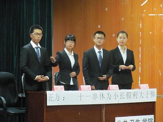主持人宣布开始后,由双方辩友分别自我介绍,并简单展示本方观点;之后,有请评委上场。主持人宣布比赛规则和评分标准。紧张热烈的比赛随即开始,本场比赛共四个环节。在整场辩论过程当中,公共卫生澳门六合彩