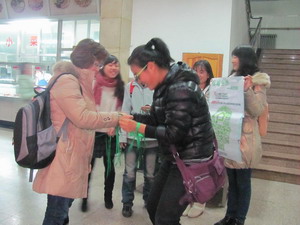 在各个食堂的午饭期间 ,绿野协会的会员们满腔热情,号召同学们不要浪费粮食,并为吃光盘子里食物的同学送上奖励 “一根绿丝带”。他们亲手为这些同学系上丝带,并赞扬他们节俭的好习惯。许多同学表示,光盘行动体现的是当代大学生品质和责任,更体现了节约粮食、不浪费不奢侈的民族传统,今后一定会继续做下去的。“一粥一饭,当思来之不易;半丝半缕,恒念物力维艰。”勤俭节约是中华民族的传统美德,轻盈飘动的绿丝带,代表着同学快乐和愉悦的心情。