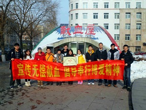 团委的领导下,吉林大学学生红十字协会组织并策划了无偿献血爱心活动。11月23日上午九时,红十字协会成员以及积极参与献血的公卫志愿者们前往长春市中心血站的献血屋进行无偿献血。
