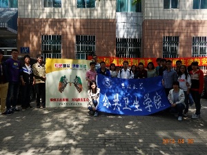 志愿者工作部在新民校区第一教学楼前举行了世界禁烟日系列活动之走进校园活动。