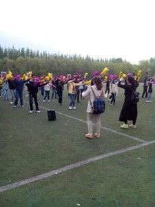 院学生会文艺部号召全体2013级同学于前卫校区体育场排练运动会大型舞蹈,同学们五点二十就已于体育场集合完毕,文艺部大二工作人员也不辞辛劳早早从新民校区赶来。