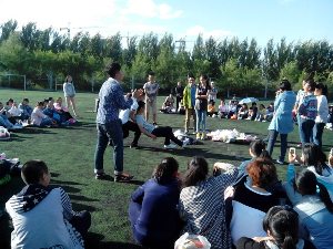 辅导员助理们精心准备了“找零钱”、“逛三园”、“我是大歌星”等游戏,现场爆笑不断,把活动带向了高潮。之后由放射二班和医药信息班的两位辅导员助理一展歌喉,另同学们赞赏不已,放射二班的辅导员助理更是展示了他的音乐模仿能力,模仿了中国好声音的几位学员,惟妙惟肖,获得了同学们的一致叫好;预防一班的辅导员助理也为同学们打了一套长拳,拳拳有力、行云流水的表演再次博得了大家的阵阵掌声。辅导员助理们的精彩表演将活动推向了又一个高潮。此外,贴心的辅导员助理们还在活动期间为同学送上西瓜,给同学们分发糖果,一片其乐融融。
