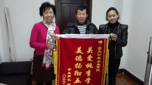 老师心系学生,家长感恩回馈。11月28日上午十点四十分,冷艳梅同学的父亲满怀感激之情将写着“关爱桃李学子,美德扬彻五洲”的锦旗送到公共卫生澳门六合彩