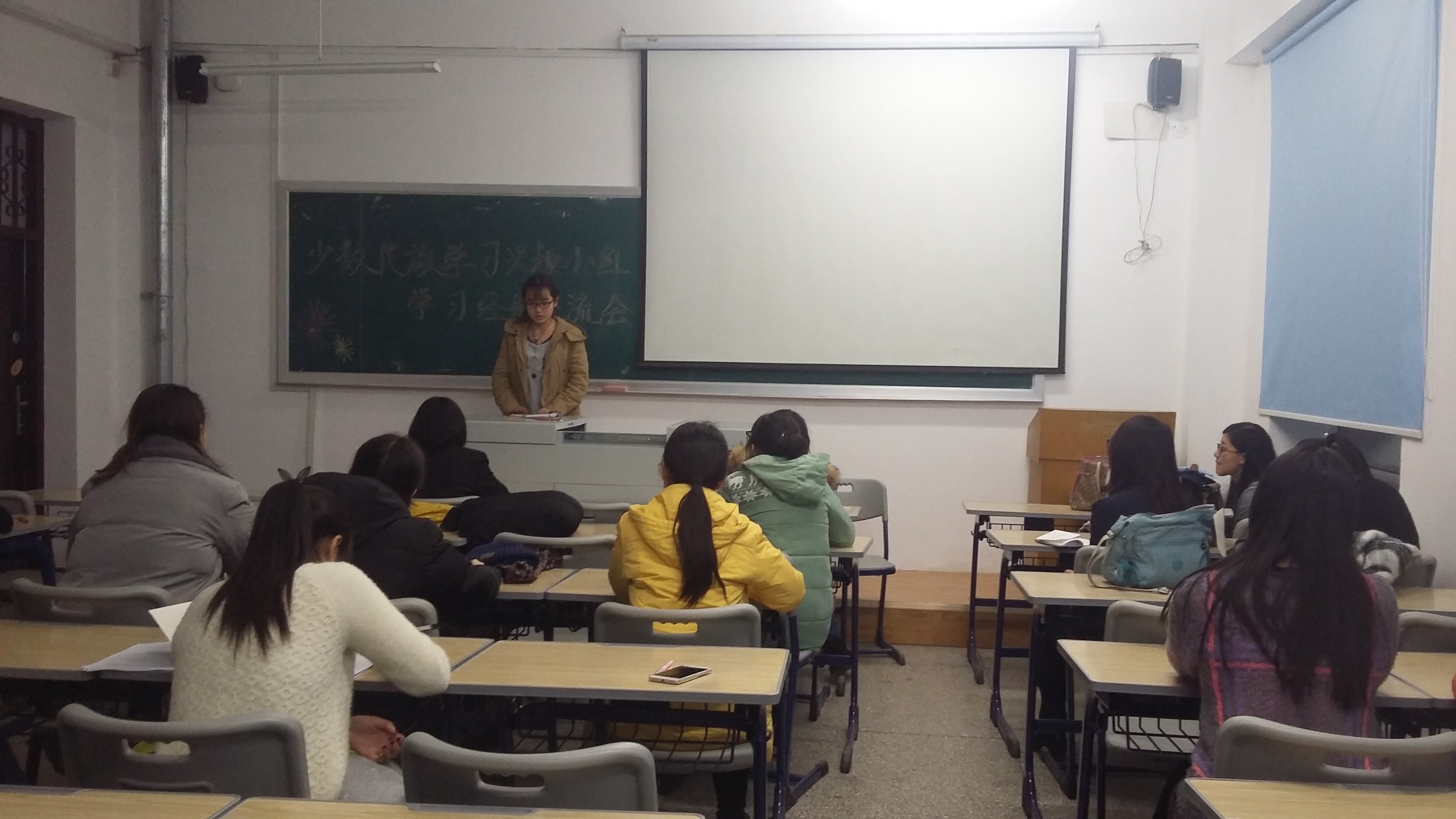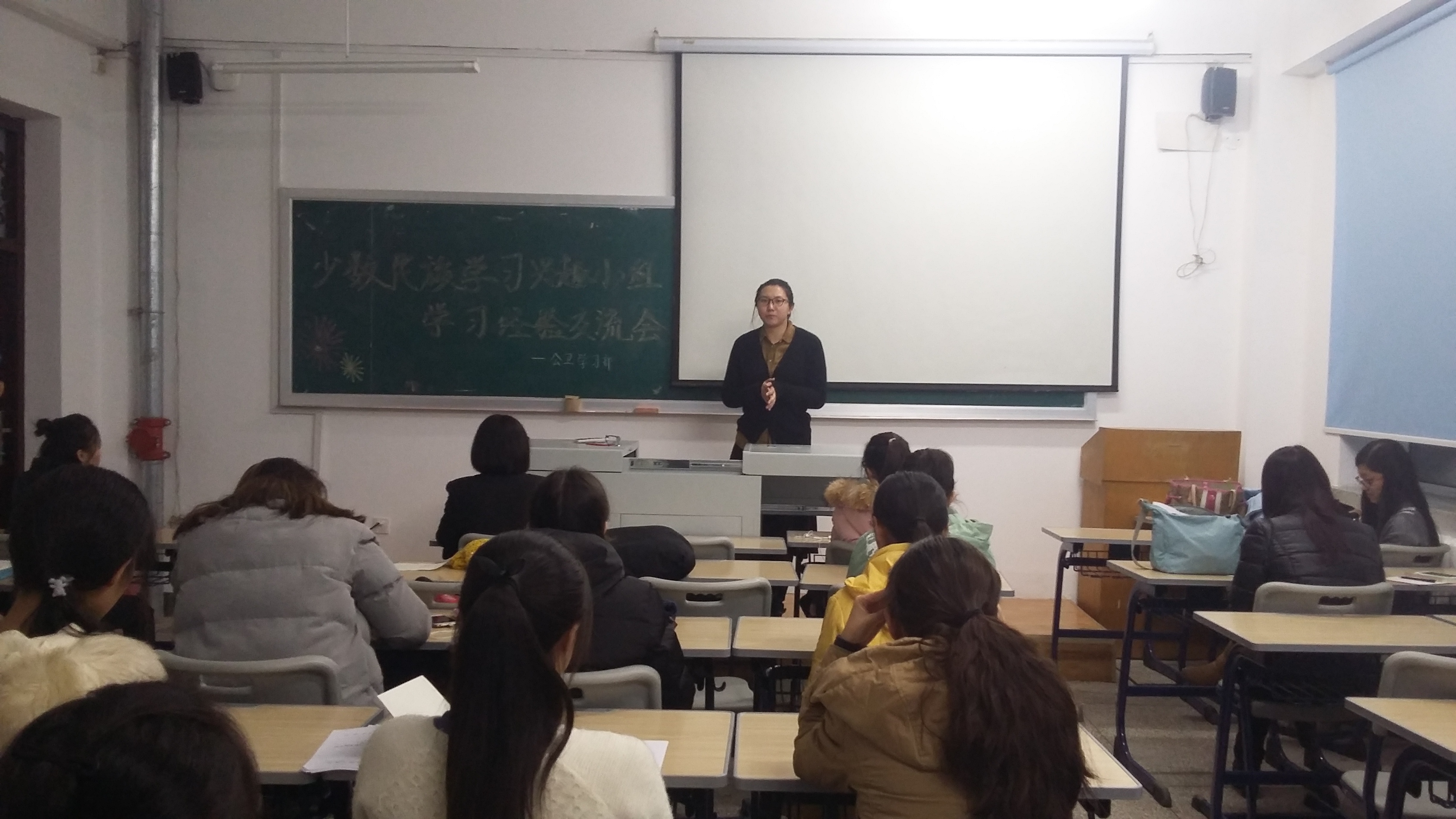 迅速成立“少数民族学习兴趣小组”,主要面向2016级新疆、西藏籍少数民族学生,意在帮助他们尽快解决学业难题、提高考试成绩。相信在学习经验交流、难题答疑解惑、每周督促学习、专题学习讲座等活动的支撑下,2016级少数民族学生的学业成绩和学习态度一定会有明显的改善。博士兼职辅导员冯佳、兰雪也在会上分别进行了自我介绍,并鼓励同学们积极进取、踏实学习。