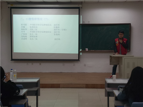 特地邀请2012级应届毕业生为学弟、学妹们进行了学习方法和就业经验分享,大会在新民校区第二教学楼2101教室进行,主讲同学覆盖预防医学、放射医学和医药信息管理三个专业,澳门六合彩