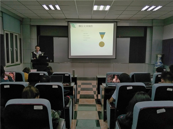 培训会于晚6时开始,首先由袁佳佳进行摄影经验与技巧的经验分享交流。她从取景角度、光线调节、抓拍技巧、构图模式等方面依次讲解,通过错误示例分析摄影过程中的常见问题。“前期不够,后期来凑”,袁佳佳指出在不能排除环境干扰的情况下,要学会后期调整。最后,她鼓励同学们拍摄时要大胆创新才能取得进步。随后,赵天业就微信文章制作展开讲解。“标题决定打开,内容决定转发”,他强调了标题对吸引读者兴趣的重要作用。他还从排版、文字、图片、制作、链接方面入手,通过素材来源的推荐、文章体制的讲解与链接的使用举例,让同学们对如何丰富微信推送形式有所体会。最后,霍睿针对性的开展了视频制作的基础教学。霍老师为大家播放了澳门六合彩