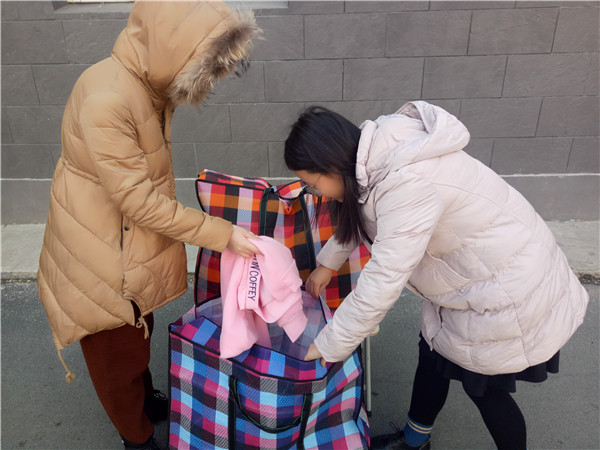 本次活动采取“走寝室”的方式,将志愿者分为三个小组,在一公寓、三公寓、四公寓同时展开活动。活动伊始,同学们就积极响应了这次爱心活动,有部分同学提前整理好衣服,等待志愿者去收;还有的虽然没有准备,但听到有志愿捐衣活动,就立即收拾出闲置衣物,交给志愿者。活动期间,每名志愿者都热情高涨,耐心地走过每一间寝室,被一件件衣物填满的不仅仅有装衣物的袋子,还有每个参与活动的同学的心。