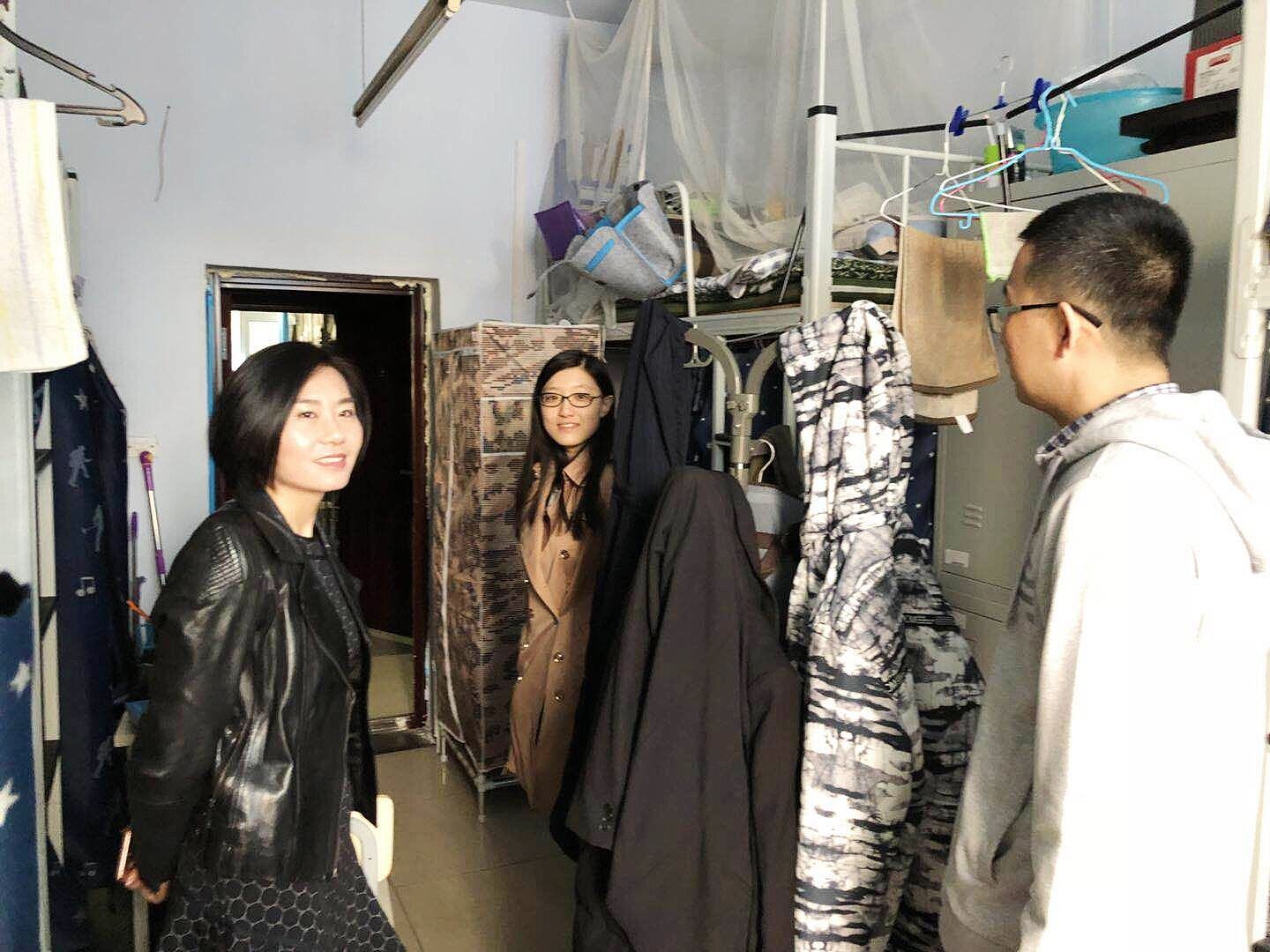 党委副书记兼副院长、2014级辅导员刘丽,团委书记兼2015级辅导员苏国范,2017级辅导员郭倩君及2016级辅导员霍睿对新民校区学生三公寓进行了寝室内务检查。