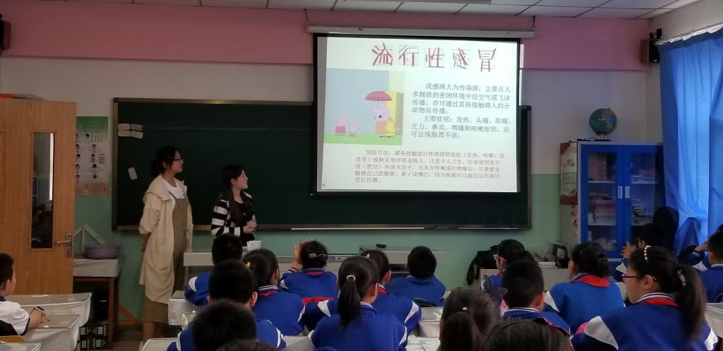活动伊始,志愿者们首先通过游戏活跃了现场气氛,调动起了孩子们的活动积极性。随后,志愿者向同学们展示了正确的洗手方法,并教育他们要经常锻炼身体,以提高自身的免疫力、降低细菌入侵的可能。志愿者还为同学们播放了动画,向孩子们介绍了常见传染病的传播方式、主要症状和预防方法。活动期间,孩子们踊跃发言、表述疑问、提出看法,志愿者们一一予以了解答。