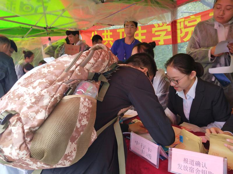 尽管秋雨绵绵,微风习习,志愿者们仍然精神饱满耐心细致地引导新生及家长,为他们详细讲解报到的全部流程。从领取档案、发放一卡通、办理医疗保险、到分发寝室钥匙,再到引导新生到达所在寝室,迎新工作按照计划井井有条地进行着。此外,澳门六合彩
