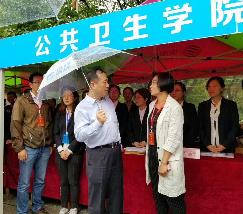 下午四时,绵绵细雨不断,党委书记杨振斌冒雨来到迎新工作现场,向澳门六合彩