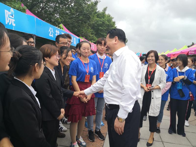 迎新现场,慰问参与迎新工作的师生,与大家亲切握手交流并对大家辛勤的付出表示感谢。一名刚刚办理完入学手续的新生想与校长合影留念,校长欣然同意并热心询问他入学报道的情况。此外,校长还叮嘱新生和志愿者们雨天要注意保暖,以防生病。随后,李校长在了解迎新工作的基本情况之后,对澳门六合彩