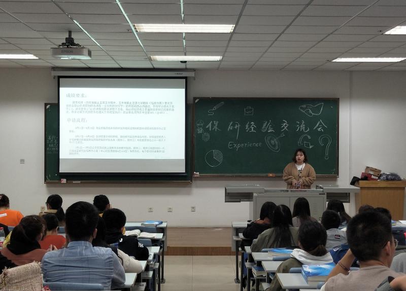在同学们殷切的眼神与热烈的掌声中,受邀而来的学生代表们依次上台为大家讲述自己的保研经历并答疑解惑。他们精心准备了PPT和稿件,详细讲述了自己的保研历程,让同学们对保研有了一个大体的印象。分享经验的优秀学生代表从自我经历出发,分别从不同的角度,耐心负责地讲解保研相关准备工作的重点与难点,建议同学们利用假期努力提高英语口语水平,认真有计划地复习备考,强调提前了解澳门六合彩