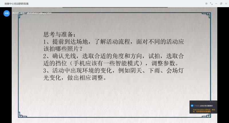 宣传与媒体中心三个部门于7月13日至15日期间,利用“钉钉”平台成功举行了媒体技能培训会。团学组织宣媒中心、社团联合会全体成员以及其他部门有工作需要的同学参加了本次培训会。