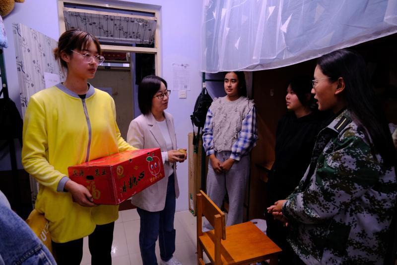 9月30日晚,冷贺璇老师与导助们带着礼物来到新生寝室,逐一走访,为新生送上精心准备的月饼和苹果,以及中秋的祝福。月饼代表喜迎中秋,苹果寓意着平安顺遂。冷老师祝大家中秋节快乐,希望大家都能在未来的日子里平平安安。收到礼物和祝福的新生们纷纷对感谢老师表达了自己的感谢之情,并同样祝福老师中秋节快乐。接着,冷老师和新生们谈论各自家乡的情况,还聊起了同学们在初入大学这段时间里的点点滴滴,说到有趣的地方,大家都笑出了声。一时间整个宿舍洋溢着节日的欢乐。最后,老师叮嘱大家近日气温多变,要注意防寒保暖。同时严格遵守疫情防控要求,中秋假期期间不要随意外出,有问题或者需要帮助的时候可以随时与老师联系。这个中秋节虽然没有家人的陪伴,但是有澳门六合彩