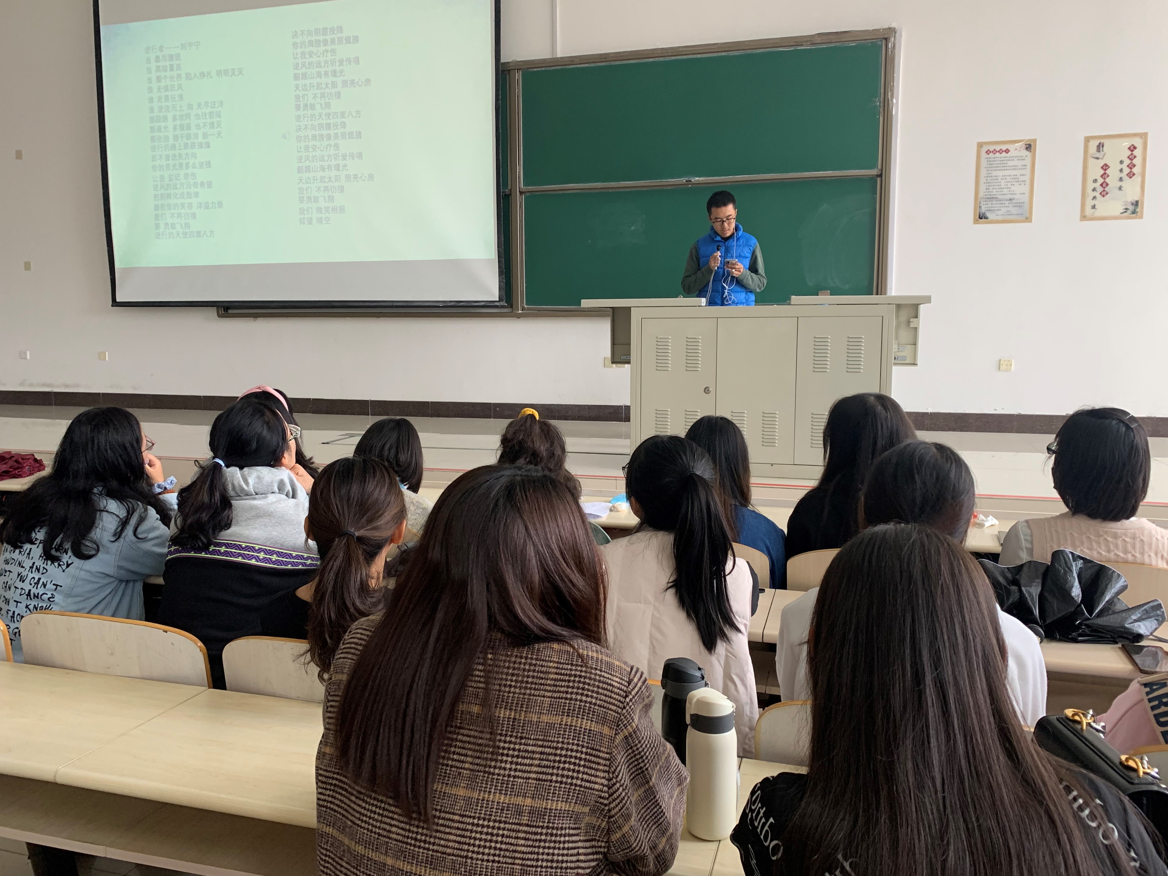 首先,本次班会主持人霍颖超介绍了疫情期间武汉基本的抗疫过程,并通过一个小视频同大家再次感受了全民共战疫的那些激动人心的瞬间。接下来由各位多才多艺的同学们送上精彩的节目。首先是蒋明函、法思睿、姚雨欣和洛松措姆共同为大家带来了诗朗诵《樱花依然盛开》。四位同学以饱满的感情,以武汉樱花为着眼点,向我们展示了一幅感人的共战疫情的画面。正如诗中所说“千年江城花开依旧,中华大地生生不息”,四位同学声情并茂的朗诵,展示了中华民族的伟大。随后,丁禹达同学上台浅谈了疫情中的死亡、亲情与爱。丁禹达同学结合清华大学某位武汉籍同学的演讲和他个人的经历,从预防医学专业角度阐释了疫情带给我们的启发。