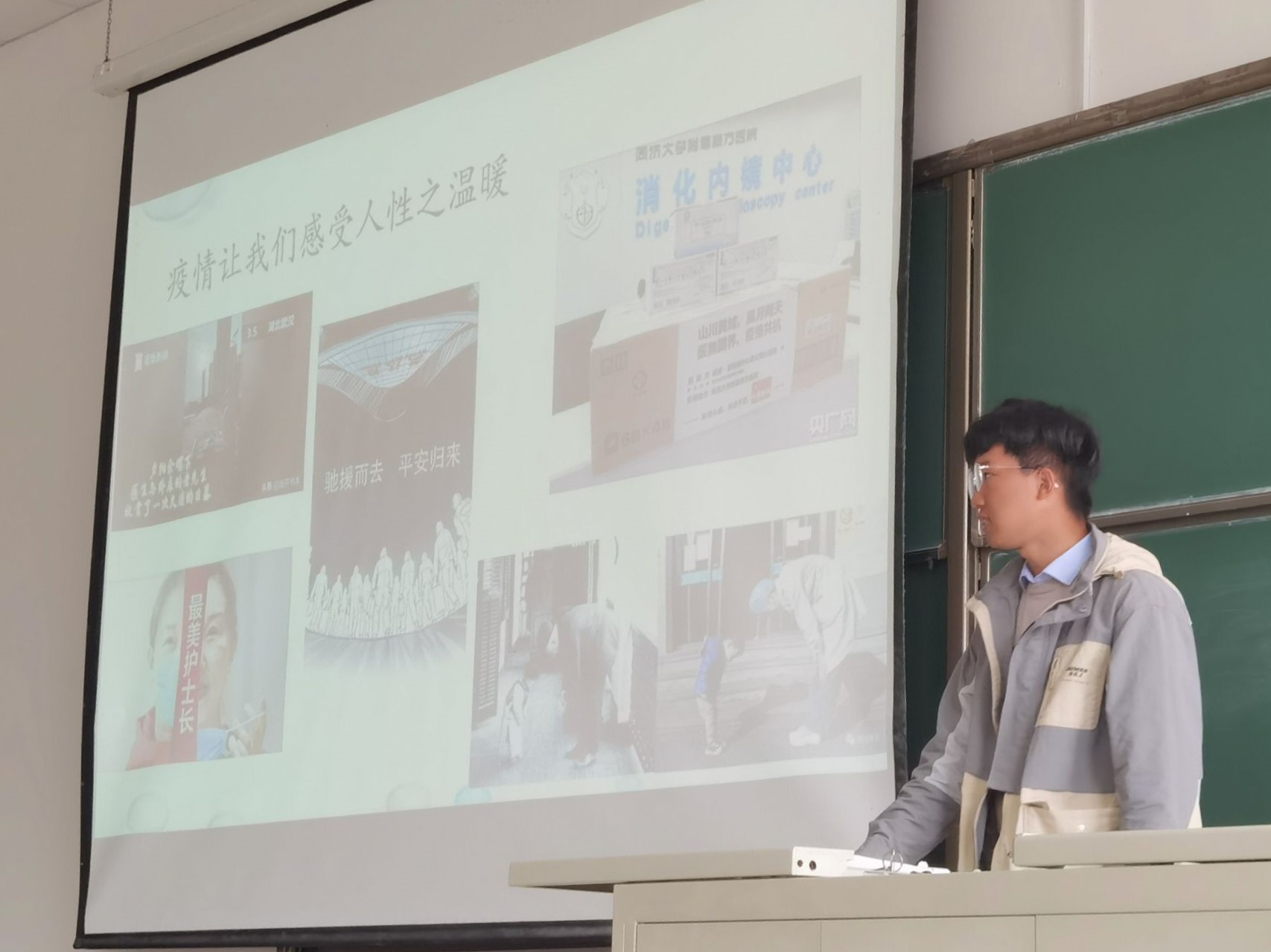 2020级预防三班于李四光一阶举行了以“共战疫情,爱国力行”为主题的班会活动,2020级辅导员冷贺璇老师参与了本次班会。