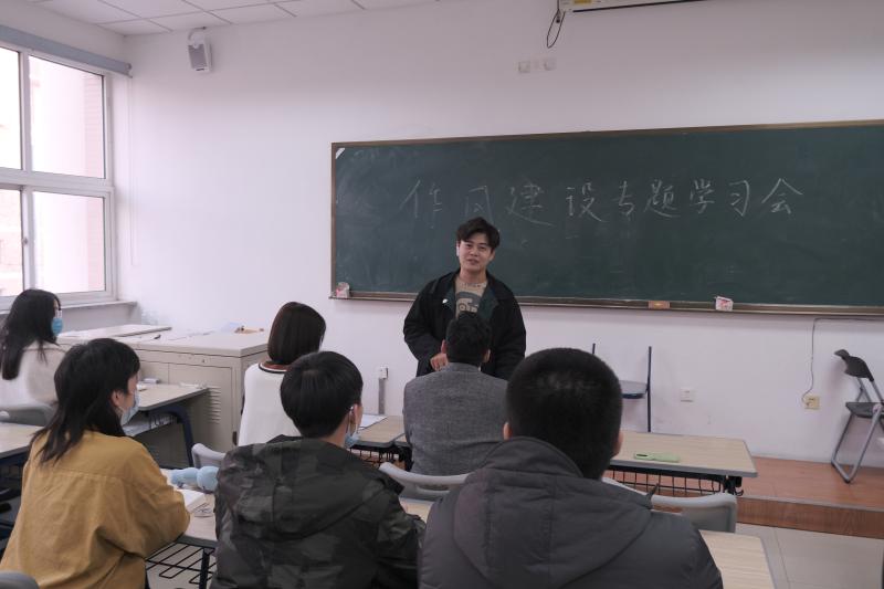 沟通,报告有关情况。对学生会工作人员的管理要求总结为六点:恪守学生本分,牢记服务宗旨,永葆理想情怀,勤勉务实做事,营造平等氛围,摒弃庸俗习气。而后,主席团成员田宏远同学以及卞骏业同学关于学生会工作人员的学习情况以及作风建设精神要求发言,希望各位工作人员能够切实做到坚守服务初心,恪守学生本分,同时以自身做好表率作用,引导同学们努力学习,不负大好时光。