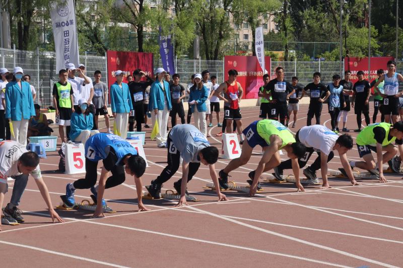 参加了本次竞赛。经过了短暂的起跑器调试,运动员们蹲下身子,静待口令。“各就位,预备”,随着“嘭”的一声枪响,运动员们闪电般地起身,后腿发力,冲了出去,向着终点发起了冲击。两位同学都势如破竹,将自身的速度发挥到了极致,可惜本次参赛的选手实力都很强劲,两位同学最终无缘决赛。